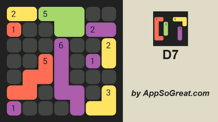 D7 fra AppSoGreat er mer enn bare et spill; det er en elegant måte å skjerpe sinnet på, samtidig som du nyter en avslappende stund. Dette er det ideelle spillet for de som elsker tankespill, strategiske blokkpuslespill, eller de som setter pris på dyp logikk innkapslet i et vakkert design. Konkurrer med venner og familie om topplasseringene på poengtavlene, og se hvem som kan oppnå de høyeste scorene. La D7 bli din nye favoritt for daglig mental trening. Følg AppSoGreat på YouTube for å motta våre siste nyheter og oppdateringer.