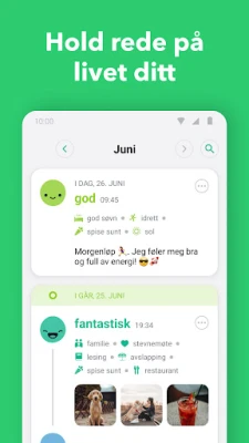 Daylio er din private dagbok og humør-tracker på norsk. Loggfør enkelt humør, vaner og rutiner. Få innsikt i mental helse, reduser stress og bygg gode vaner. Perfekt for refleksjon og egenomsorg.