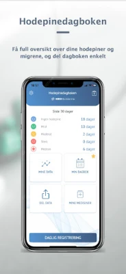 Hodepinedagboken gir deg full kontroll over din hodepine og migrene. Spor symptomer, utløsere og behandlingseffekt for å forstå mønstre og forbedre din livskvalitet. Få verdifull innsikt i utviklingen over tid.
