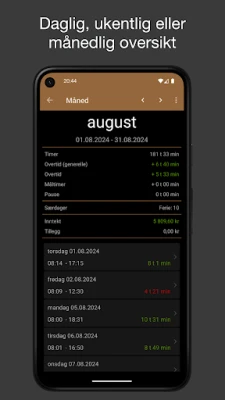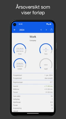 iboChron tar jobben med tidskalkulasjoner ut av dine hender. Appen beregner automatisk dine pauser, arbeidstimer, overtid, og opptjente inntekter. Få en krystallklar oversikt over sykedager, ferie, og undertid, presentert per dag, uke, måned eller år. Enten du håndterer flere prosjekter eller administrerer timekontoer fra tidligere år, gir iboChron deg full kontroll. Og for å sikre at du aldri glemmer en registrering, tilpasser appen seg dine vaner og sender deg smarte påminnelser akkurat når du trenger dem.