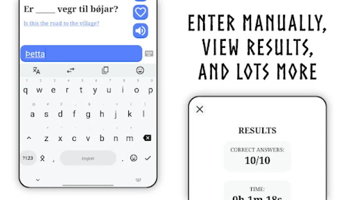 Med en stadig voksende samling på over 2000 ord og fraser, sikrer Learn Old Norse+ at du alltid har nytt materiale å utforske. Berik din kunnskap med dedikerte flashkort, lær om hvert ords grammatikk, og utforsk den spennende Younger Futhark-runekonverteren. Hver dag presenteres et "Dagens ord" for å holde deg engasjert, og alle fraser du har møtt kan enkelt gjennomgås for grundig repetisjon. Få full oversikt over din egen fremgang med avansert statistikk, inkludert din beste rekke, brukte hint, antall korrekte svar og total læretid. Appens intuitive og brukervennlige design er optimalisert for rask læring, og engelske oversettelser vises diskret for å opprettholde den språklige fordypningen. Mange funksjoner er tilgjengelige offline, slik at du kan fortsette læringen uavbrutt, selv når du er på farten. Learn Old Norse+, et prosjekt fra de dyktige utviklerne bak Valhalla+, er i en spennende tidlig fase og tilbyr foreløpig læring fra engelsk til norrønt, med utvidelse til flere kildespråk i planene.