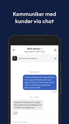 Med dette intuitive verktøyet kan du umiddelbart respondere på jobber du finner interessante, alt innenfor en strømlinjeformet plattform. Appen holder deg også i konstant kontakt med dine verdifulle kunder, noe som sikrer klar kommunikasjon og bygger sterkere relasjoner. Glem å sjekke e-post eller miste viktige meldinger – du mottar øyeblikkelige varsler hver gang en kunde svarer. Dette sikrer at du alltid er oppdatert og kan handle raskt for å sikre oppdrag eller gi nødvendige avklaringer, og dermed opprettholde en profesjonell og responsiv service.