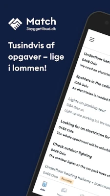 Få mere arbejde som håndværker! Med MATCH Håndværker-appen kan du nemt finde attraktive job på 3byggetilbud Match, svare på opgaver, holde kontakten med dine kunder og modtage notifikationer, når de svarer. Optimer din arbejdsdag.