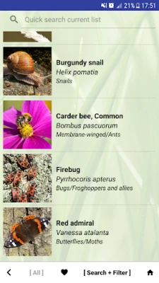 Appen fungerer som ditt personlige naturleksikon, og dekker et forbløffende mangfold av livsformer. Gjenkjenn og lær om alt fra fargerike blomster, robuste trær og frodige busker, til fascinerende sopp, grasiøse bregner, unike lav og myk mose. Utvid din forståelse for dyreriket ved å identifisere pattedyr, majestetiske fugler, intrikate insekter, smidige reptiler, kjølige amfibier, elegante fisker og en verden av virvelløse dyr. Med et omfattende bibliotek av arter er hvert møte med naturen en mulighet til å lære noe nytt.