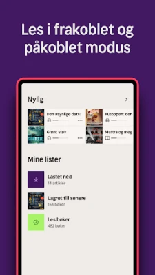 Nextory transformerer enhver stund til en mulighet for fordypning. Lytt mens du pendler, les på ferie, eller finn roen med en god historie hjemme i stuen. Med muligheten til å lagre bøker direkte på din smarttelefon, nettbrett eller Wear OS-enhet, er du aldri avskåret fra din litterære verden – uansett om du er online eller offline. Vår intelligente anbefalingsmotor skreddersyr forslag basert på din lesehistorikk, slik at du enkelt kan finne nye favoritter som treffer akkurat din smak.