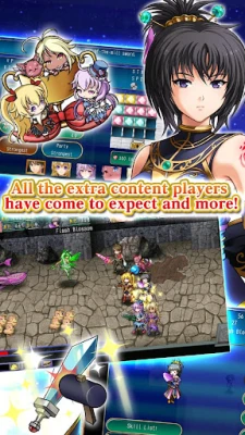 Opplev ultimate kamper og enestående tilpasningsmuligheter. Dette spillet presenterer et helt nytt lagsystem som lar deg lede opptil seks karakterer i dynamiske trefninger mot mektige fiender. Vitne til kulminasjonen av KEMCO/EXE-CREATEs mange års ekspertise innen RPG-utvikling, manifestert i det mest visuelt imponerende spillet i serien hittil. Rubiks-systemet gjør et triumferende comeback, og lar deg plassere juveler for å styrke karakterenes parametere. Forbedre sjeldne våpen for å skape ditt eget personlige instrument for å bekjempe ondskap, eller send ut venner for å tjene Guild Coins mens hovedgruppen er på oppdrag. Deres juveler kan også utstyres for å lære unike ferdigheter, noe som gir dyp strategisk frihet.