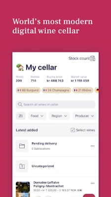 Oppdag den ultimate løsningen for å mestre din personlige vinsamling. Vinify transformerer måten du forvalter og nyter vin på, og gir deg full oversikt over hver flaske du eier. Enten du er en erfaren samler eller nettopp har begynt din vinreise, kan du enkelt registrere antall flasker, deres eksakte plassering i kjelleren, og legge til personlige smaksnotater og vurderinger. Få verdifull innsikt ved å spore innkjøpspriser og sammenligne med ekspertenes bedømmelser, alt samlet på ett intuitivt sted.